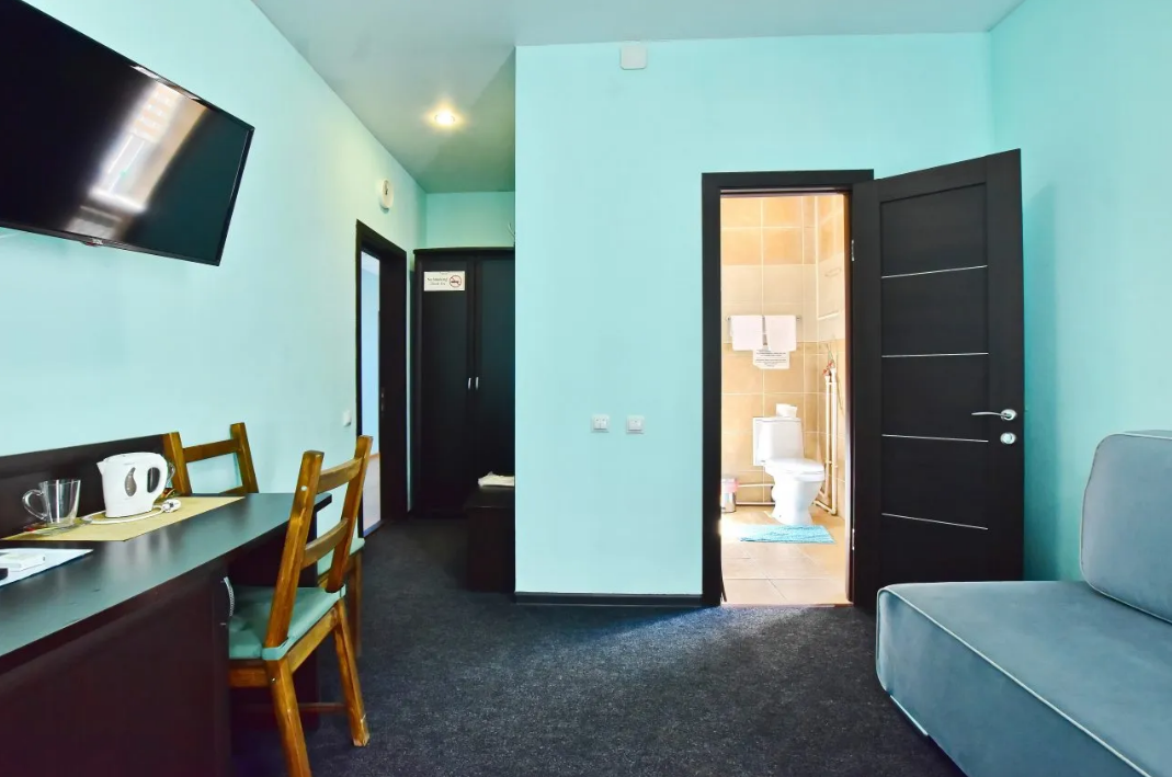 - Сервис: Wi-Fi бесплатно, смена полотенец, смена постельного белья, уборка номера